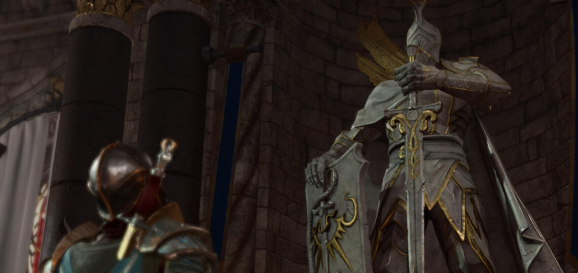 The war only ended after over five years, with a defeat on the Hellriders’ part, standing among the ruins of a war-devastated Elturel, sunken into Hell. There was no justice in this world. Ashen was broken through and through, physically and psychically. He had earned his seniority stripes and the respect of his unit, but at the price of much more than what was apparent. For months, he was alive but absent, his gaze elsewhere, his thoughts a thousand realms beyond. The companions who had entertained him through his teenagehood were dead, and those who remained were far too inexperienced to understand the soldier’s trauma.Unable to help him, desperate for any solution to nurse their son back to health, and after having brought him to many healers and doctors, his parents eventually begged the High Watcher of Helm’s temple in Baldur's Gate to come to their aid. He agreed, taking Ashen in for a spiritual retreat where he was taught the Helmite creed, which his military career already acquainted him with. Under the favourable auspices of Helm’s temple, perhaps touched upon by the Great Guard Himself, the young man made a miraculous and quick recovery.