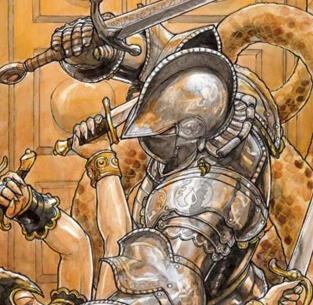 For a few years, his duties consisted of nothing much but cleaning stables, caring for the horses, patrolling the city and guarding caravans. He worked ably and seriously but longed for something more exciting, a wish he would come to regret. He was thrown into active duty at the age of sixteen, participating in his first cavalry charge when Zariel’s hellish legions assaulted the fortresses of Elturel. Though well-trained, he was still frail and thin. He was thrown off his horse and heavily wounded at the first assault.Nevertheless, this would not be his last charge, for, over time, the assaults turned into a full-blown war with Avernus. Too often wounded, too often exhausted, he would get up again and keep fighting until his legs gave out under him, driven by a mysterious force, a strength of spirit that marked him as a most resilient warrior, even if not a particularly fearful one. Was it supernatural? Some liked to believe it, but a more rational guess would be that the young man was afraid that the cambions and imps would one day reach his family if he did not keep getting back on his feet.
